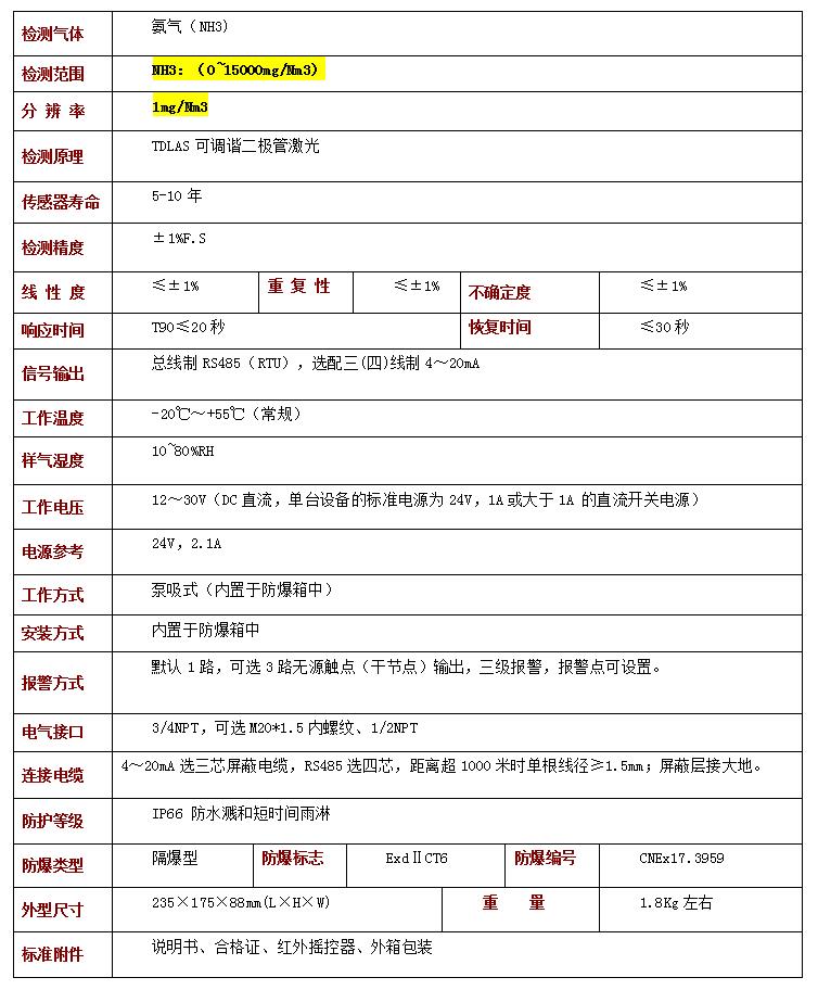 ★過濾前工況:氨氣檢測儀最大量程要求15000mg/Nm3,檢測點:壓力3.5kpa,溫度:75度,濕度比較大,含水量90%RH。務必需要防爆裝置。