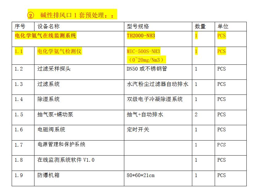 根據客戶反饋,現場為太陽能電板生產車間,某些工藝會產生氨氣,車間專門的抽風機將氨氣抽入直徑為0.9米的管道中,有兩個點需要安裝氨氣監測系統,測量位置堿性進風口,量程要求0~15000mg/Nm3。管路中的氨氣經過過濾系統過濾后再進行排放。堿性排風口量程要求0~20mg/Nm3。此次主要檢測過濾前的氨氣濃度和過濾后的氨氣濃度,通過數據來計量過濾系統的效率。