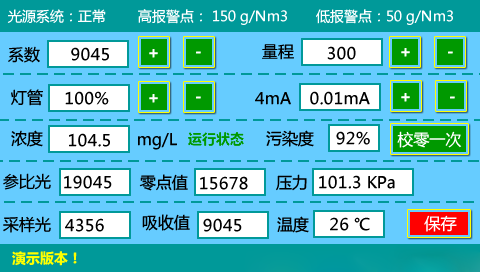 數據顯示:高清彩色觸摸屏,高濃度量程設置進氣體質量流量,實時顯示產量。